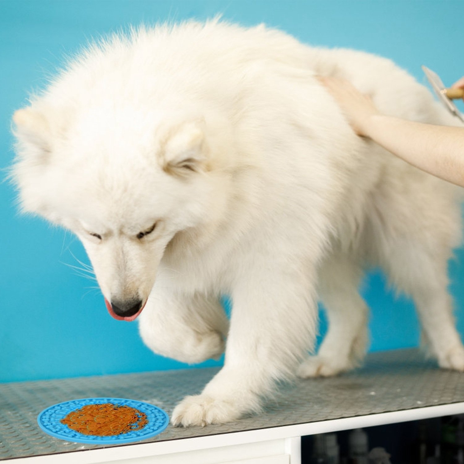 ** MAKE FUN BATH TIME*: Simply apply peanut butter or cream cheese to our dog lick pad. It can be used for brushing; nail trimming; and training! When your buddy licks these foods; gets to enjoy a tasty snack and distract from discomfort.