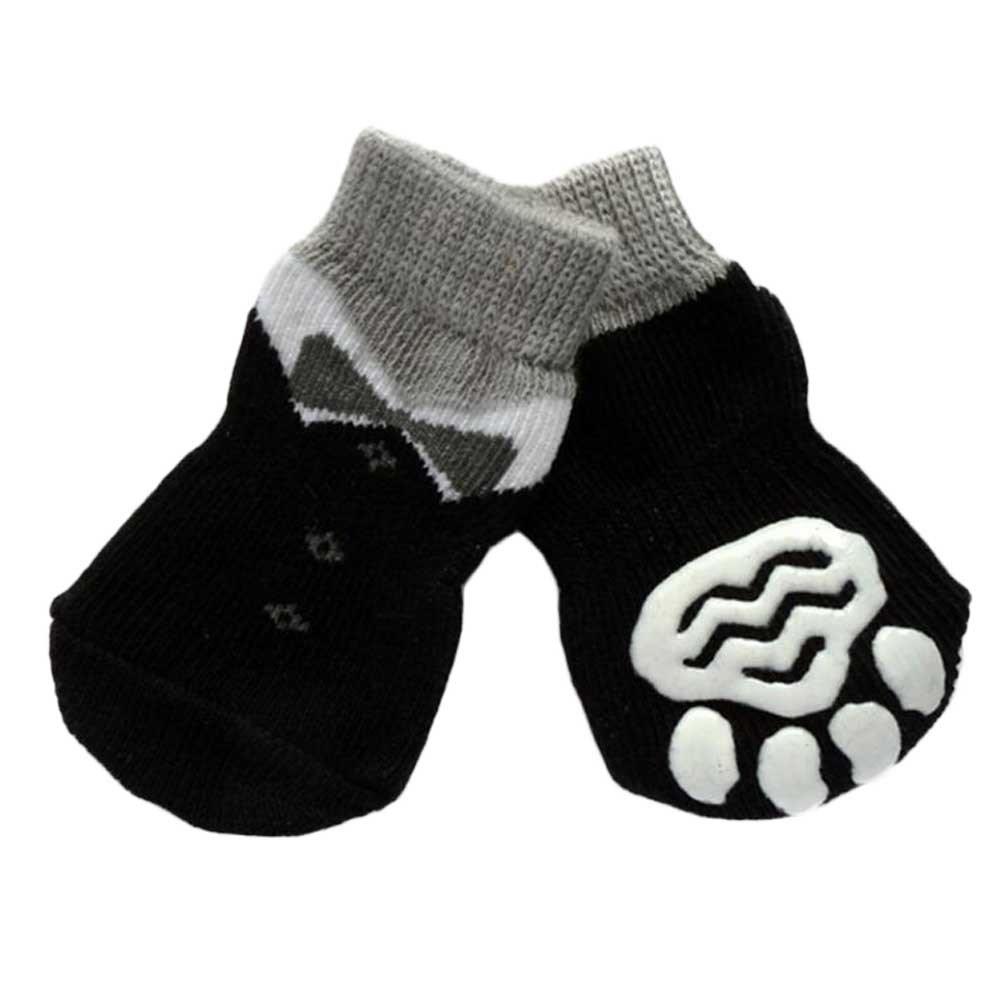 Home > 4 Pcs Cute Puppy Cat Socks Knitted Pet Socks Dog Paw Protection Poodle Teddy Socks, Black Suit