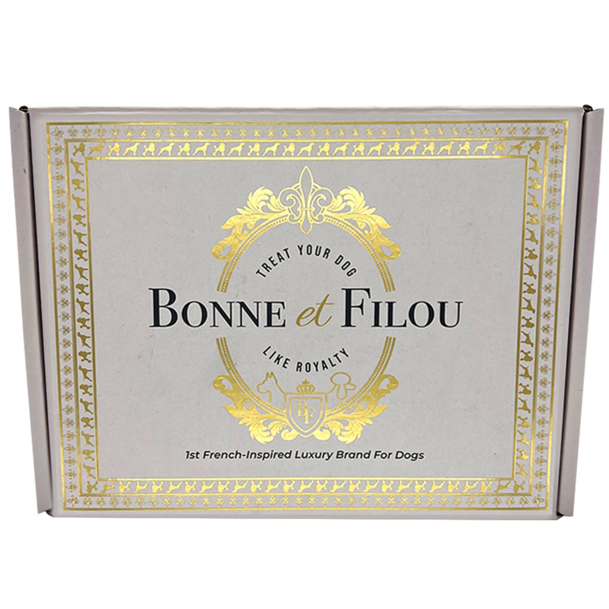 Inspired by the lavish lifestyles of French King Louis XIV’s dogs, Bonne and Filou (who lived in the Palace of Versailles with their own dog chef), we bring you the Bonne et Filou Christmas Box.