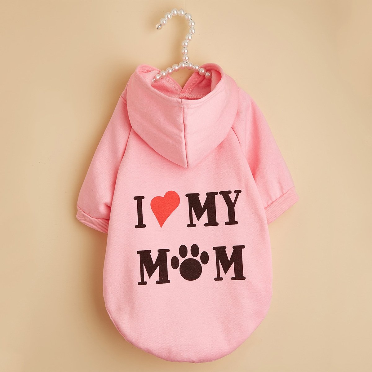 Pet Hoodie For Small & Medium Dogs; I Love My Mom Dog Hoodie Cat Shirts; Cute Pet Apparel